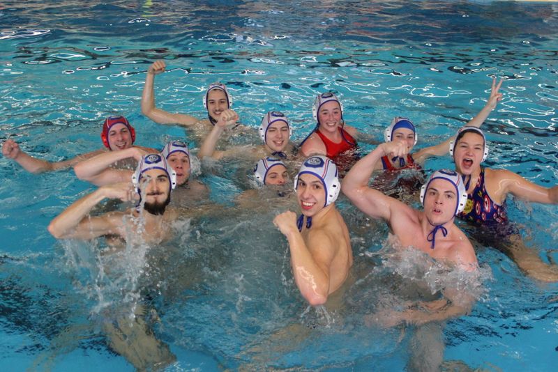v.l.n.r: Michael Geier, Moritz Plenefisch, Oliver Färber, Lukas Mayer, Nico Feder, Konradin Nekola (abtauchend), Patrick Färber, Vesselina Velikova, Andrea Moor (verdeckt), Max Nekola, Athena Grandis